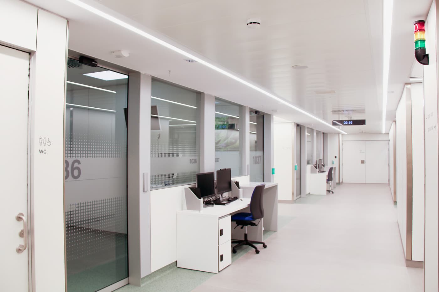 At the emblematic Saint Pau Hospital in Barcelona, we developed the lighting control system for the expansion of the Intensive Care Units. The project encompasses both the work areas of the healthcare staff and the patient rooms, where specific lighting based on circadian cycles was designed, with the aim of promoting rest and contributing to the recovery process.